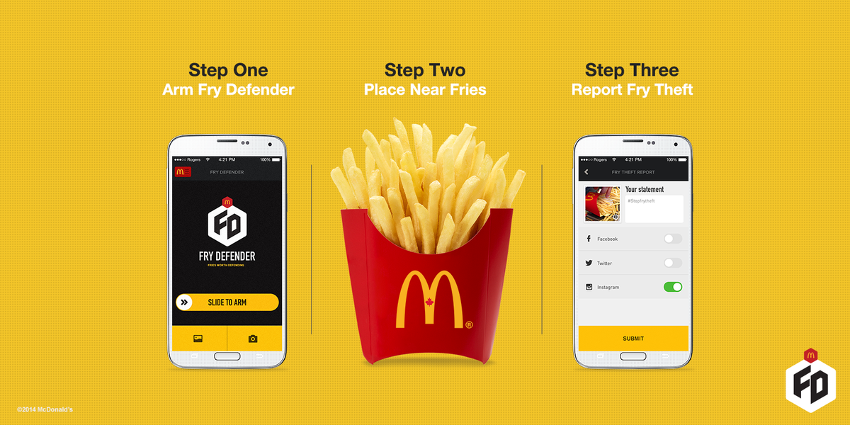 In 2014, McDonald's Canada created this ingenious mobile marketing campaign. They came up with the idea from social listening. Many people were saying that they loved McDonald's fries, but other people were constantly stealing them. So the Fry Defender was invented.